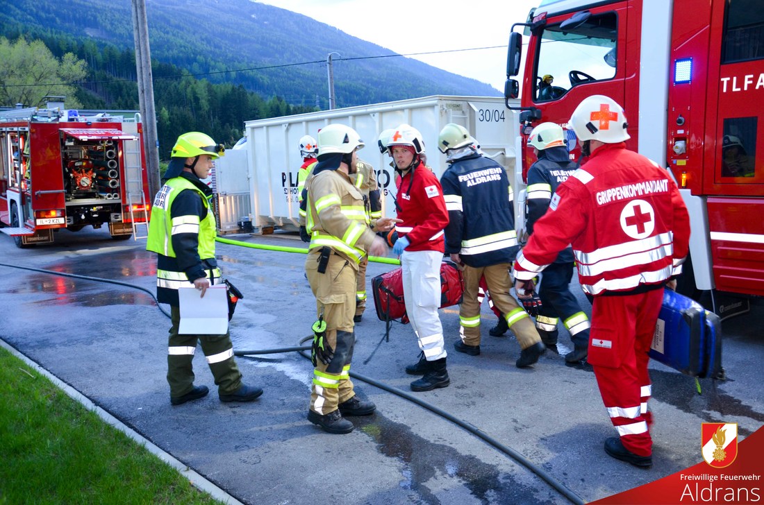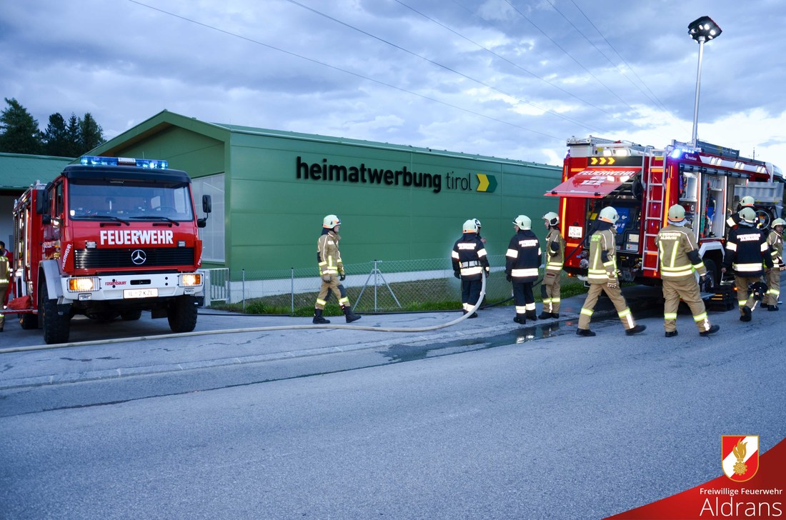 Neue Anlagen und Unternehmen bieten für die Feuerwehr immer ein großes Übungspotential. Die 2015 errichtete Heimatwerbung im Ortsteil Wiesenhöfe war Übungsobjekt für die Frühjahrsübung der Feuerwehr Aldrans. Da in diesem Ortsteil eine Parallelalarmierung mit der Feuerwehr Rinn besteht wurden diese auch in die Übung miteingebunden. Ebenfalls mit auf Anfahrt war das Rote Kreuz Innsbruck.
