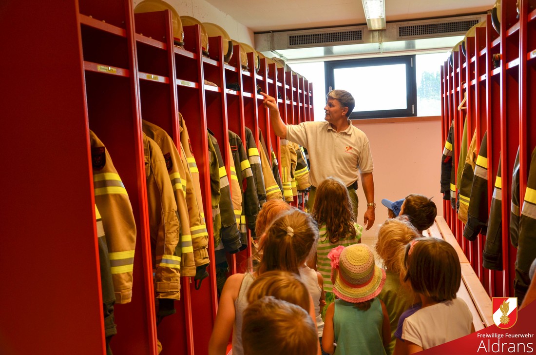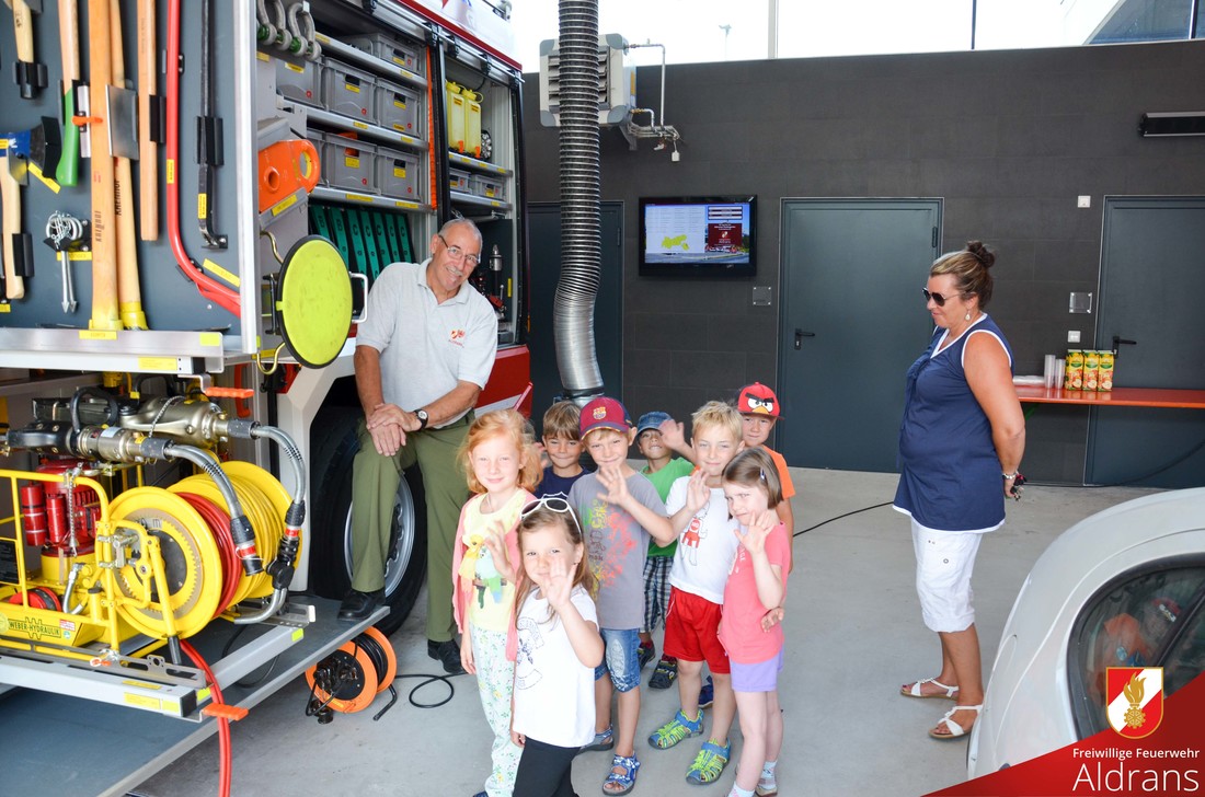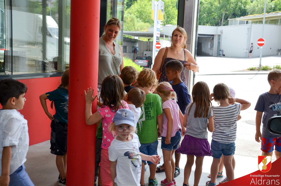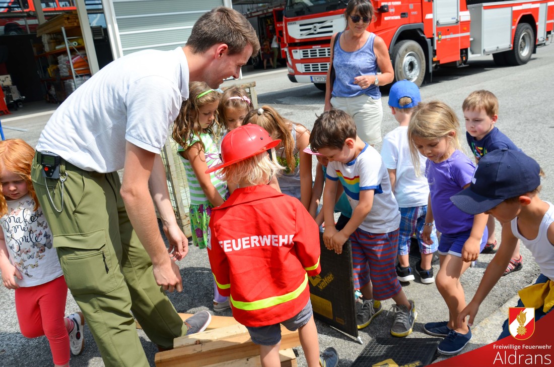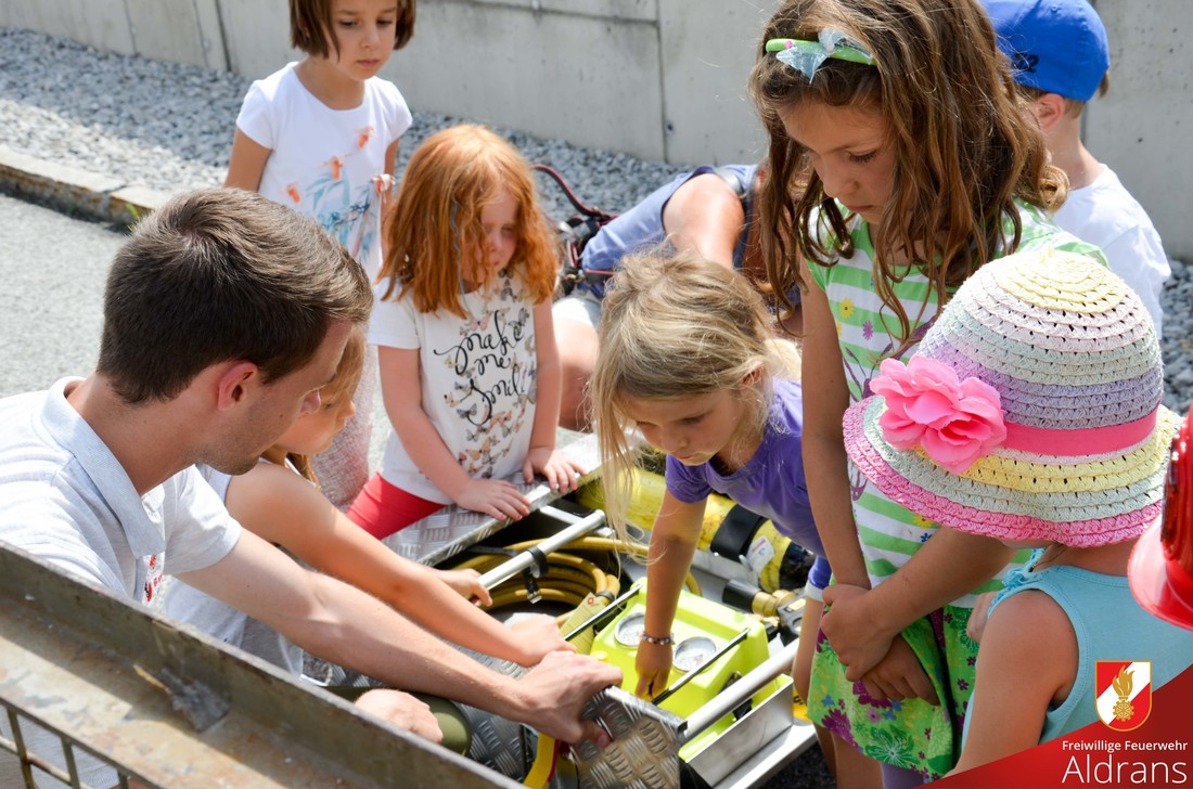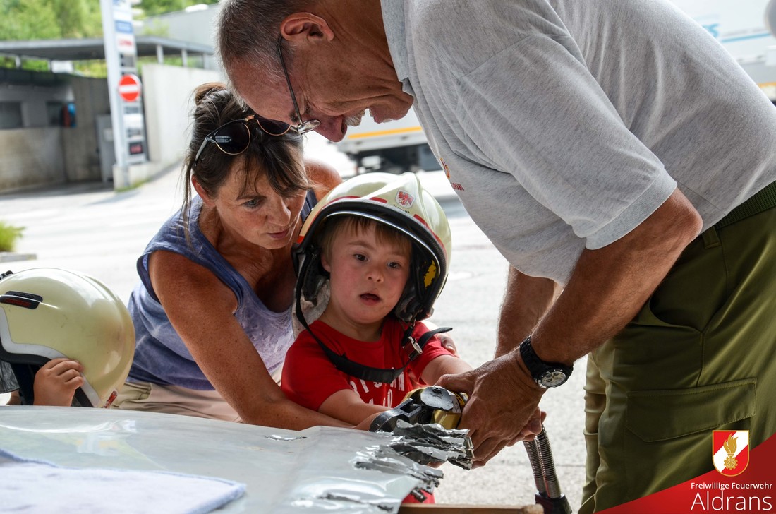 Schon traditionell findet kurz vor den Sommerferien der Besuch des Aldranser Kindergarten in der Feuerwehr Aldrans statt. Bei diesem Besuch gibt es immer spannende Stationen wobei die Kinder direkt eingebunden werden. Bei der ersten Station wurde den Kindern unser RLFA mitsamt der Bergeschere vorgestellt. Hier durfte jeder selbst bei einem Übungsauto mit dem kleinen Pedalschneider das Fahrzeug „zerlegen“. Weiter ging es auf dem Vorplatz. Hier wurde die Stärke der Hebekissen vorgeführt.