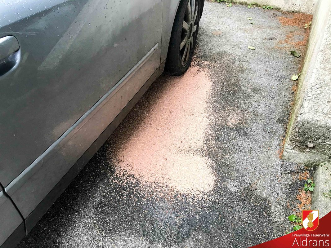 Unter einem geparkten PKW traten kleine Mengen ÖL aus. Dies wurde von uns gebunden. Das Fahrzeug wurde anschließend einem Fahrzeugklub übergeben.