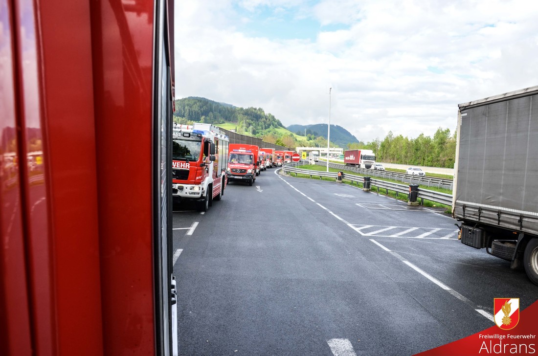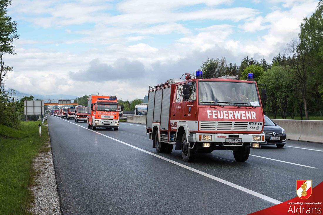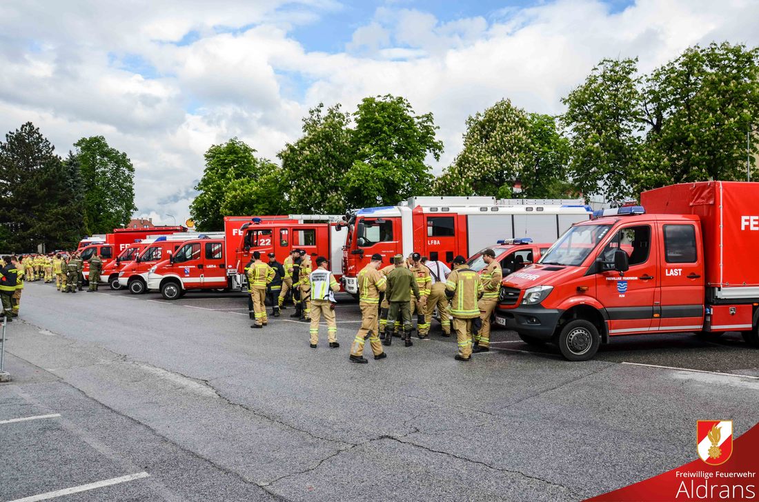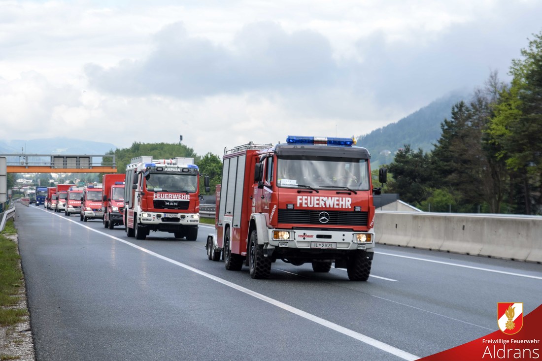 Um im Ernstfall ein reibungsloses Auffahren der Hilfskräfte zu gewährleisten fand am Samstag, 13. Mai, ein Übungstag aller drei KHD-Züge von IBK-Land statt. Die Abschnitte Wattens, Hall und Lans (dazu gehört auch die Feuerwehr Aldrans) gehören zum 1. Zug, dieser traf sich um 8:45 Uhr auf dem Parkplatz der Saline in Hall. 23 Feuerwehren stellten Mannschaft und Gerät zur Verfügung. Nach der Einteilung und Mobilmachung fand die Abfahrt zum Schadensraum statt.
