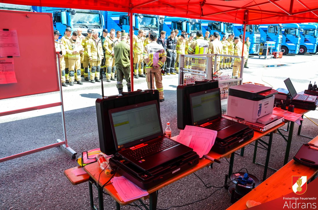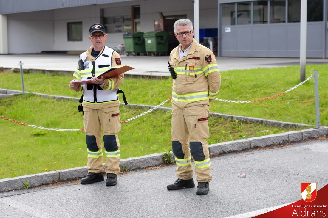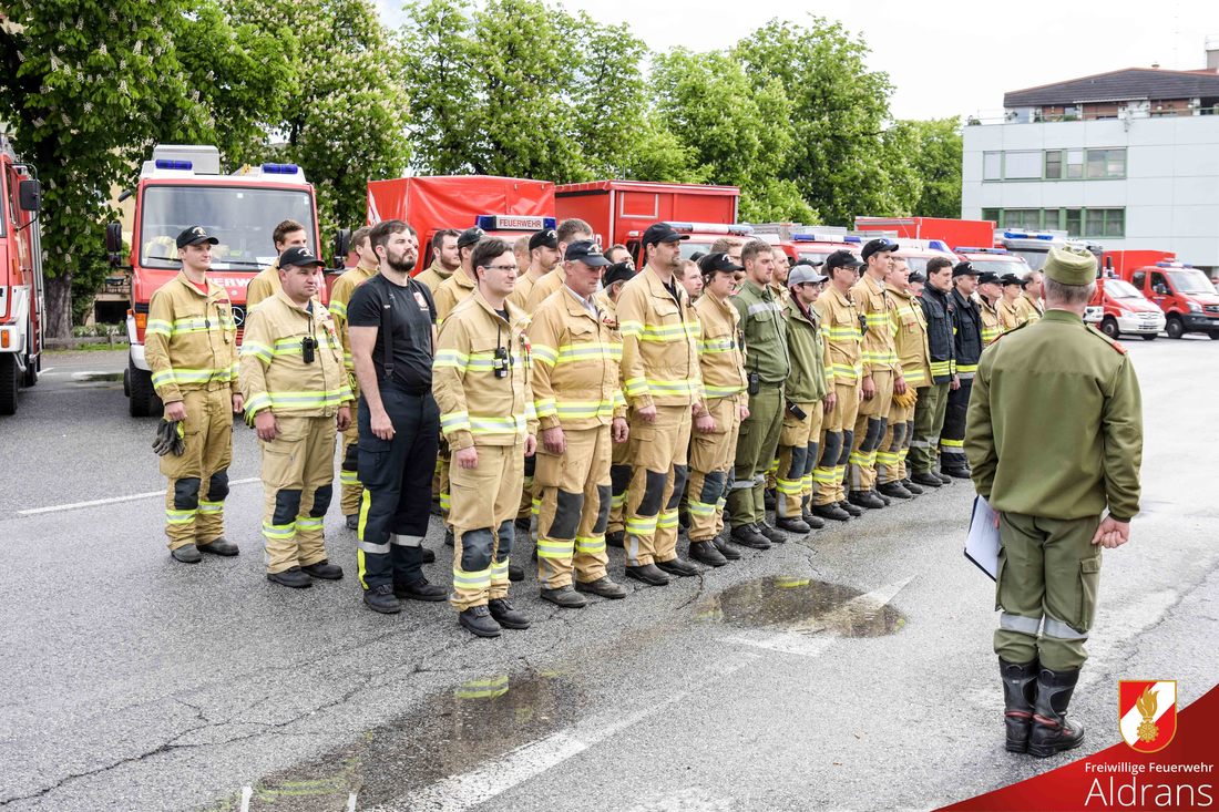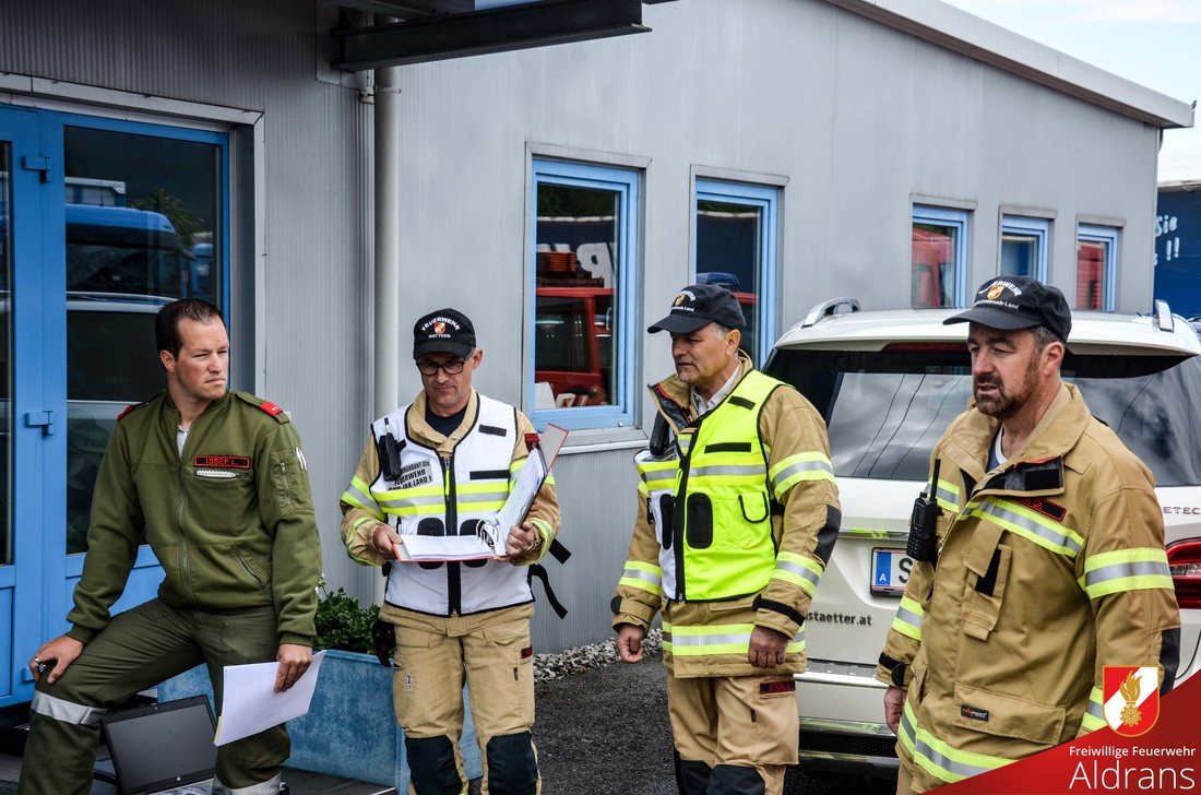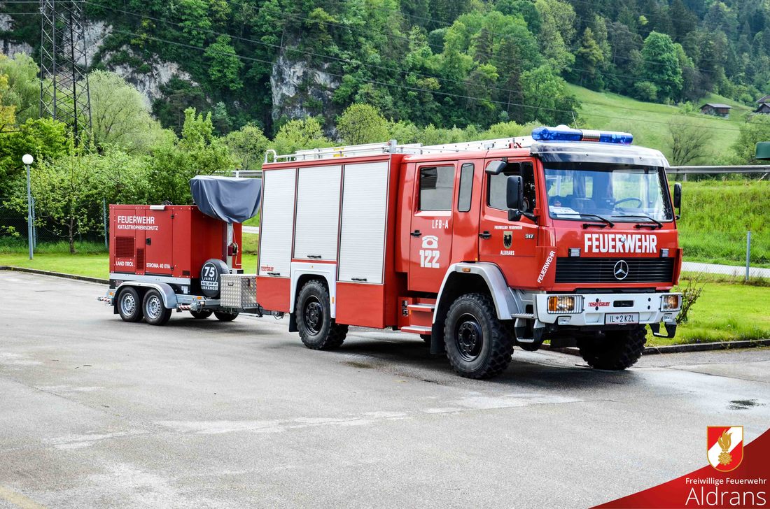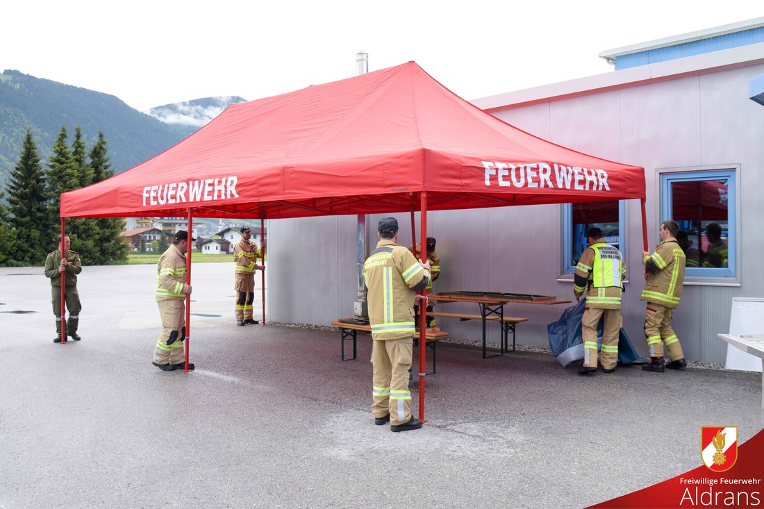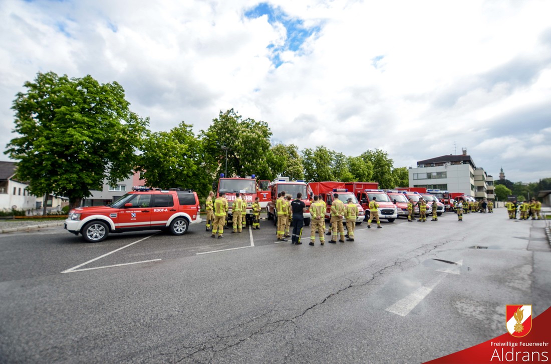 Angenommen wurde, dass im vorderen Zillertal in dem Ort Strass, durch eine Überschwemmung, ein Großschadensereignis eingetreten ist und der Bezirk Schwaz um Unterstützung gebeten hat. An der Sammelstelle in Strass wurde von Einsatzabschnittsleiter AK ABI Werner Strobl die einzelnen Fahrzeuge auf die verschiedenen Objekte verteilt. Die Aufgabe der Feuerwehr Aldrans bestand in der Stromversorgung des örtlichen Abwasserverbandes.